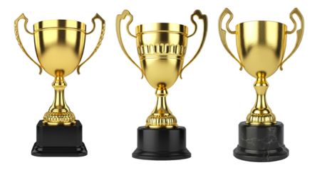 Collection of winner golden trophy cups isolated on a transparent background, Golden trophy cups, and winner awards isolated on a white background. To celebrate thesuccess PNG format for your designs