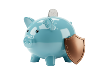 Isolated piggy bank with shield, protecting money to ensure savings goals are met soon