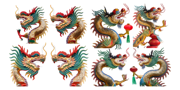 Colorful Chinese Dragon Statues with Intricate Design Elements