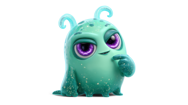 curious cartoon-style mint green alien