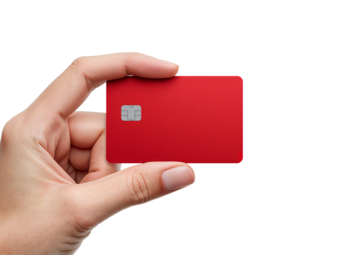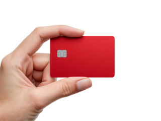 Crimson payment card presentation on transparent background, highlighting security and modern
