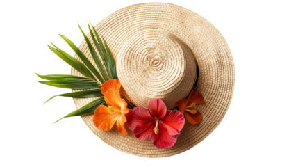 vintage luggage, sun hat, and starfish suggesting travel and vacation isolated, transparent background