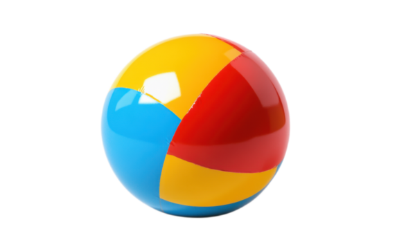 Colorful inflatable beach ball representing summer recreation, radiating playful energy against sandy or poolside backgrounds