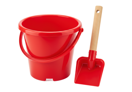 Red bucket and shovel isolated on transparent background