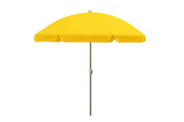 Yellow beach umbrella offering shade and sun protection for a relaxing summer day or vacation, isolated on a transparent background