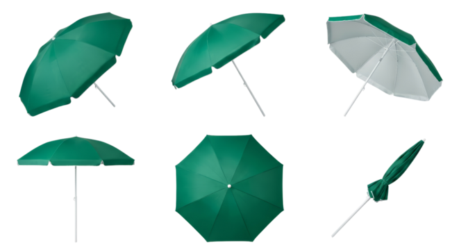 Green Beach Umbrellas - Multiple Angles and Views