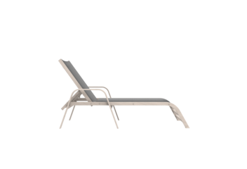 Tiny desk, computer, chairs, umbrella, and inflatable ring, set outdoors