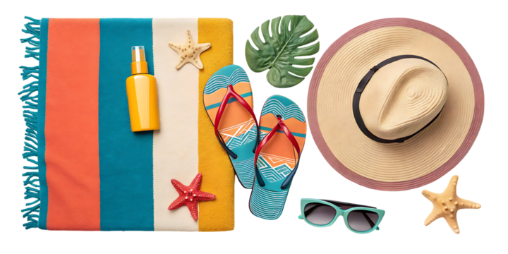 summer beach accessories isolated on transparent background
