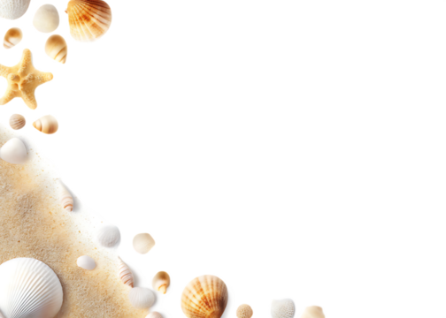 Sand and sea shells beach theme isolated on white background PNG
