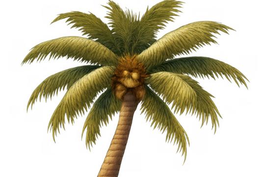 Palm tree illustration showcasing the trunk and green fronds, ideal for tropical, summer, and beach themed designs, isolated