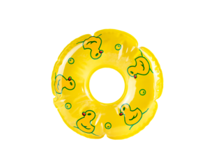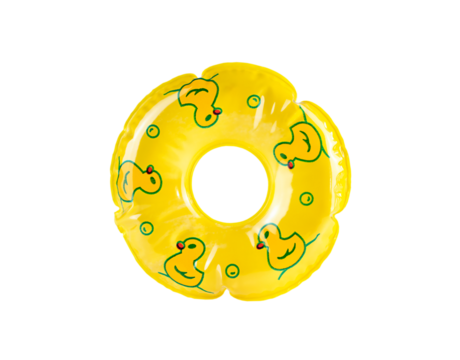 Pink flamingo inflatable buoy ring isolated on transparent background, PNG. Lifebuoy kids swimming safety