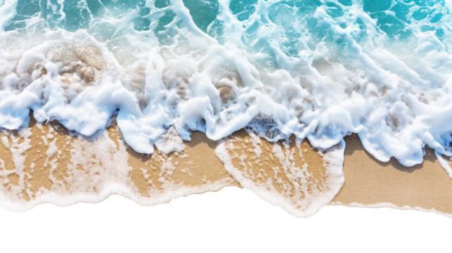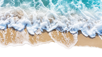 Aerial view of gentle ocean waves with white foam on a transparent background