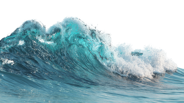 Rising ocean waves beachfront nature photography coastal dynamic. Isolated on transparent background, png.