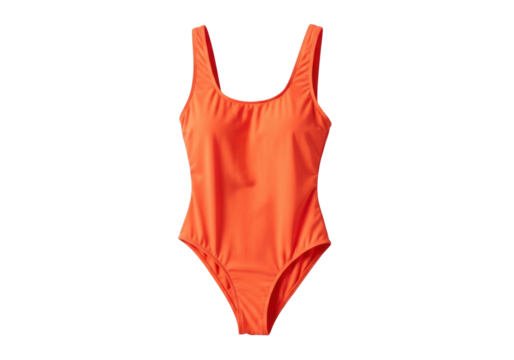 Isolated orange one-piece swimsuit showcasing a stylish and contemporary beachwear design, cutout