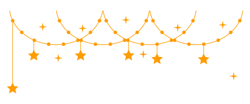 Gold Star of David ornaments are hanging from bead garlands in flat style on transparent background