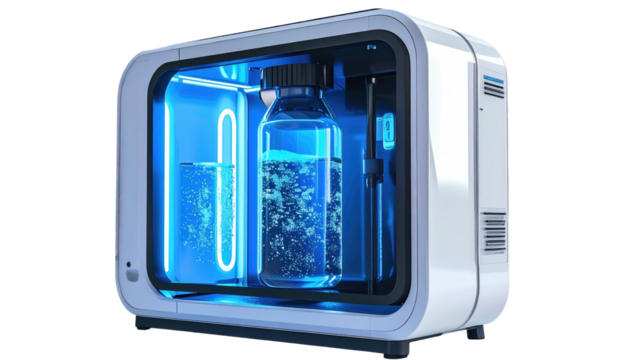 Chemistry Laboratory Flask with Blue Liquid Bubbles PNG isolated Transparent White Background Photo Image Full hd 4k Download