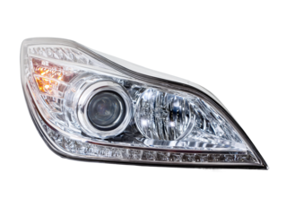 A car headlight close-up, revealing its modern design and lighting elements Isolated Transparent Background, PNG