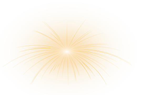 Yellow fireworks with radiant golden glow, sparkling atmospheric bursts, and soft glowing debris trails ideal for decorative holiday scenes, celebration posters, and transparent PNG overlays
