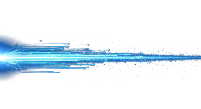 blue light beam line streak moving across dark background, glowing effect, digital motion trail clean png