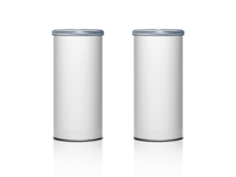 Cans packaging for snack product like potato chips or peanuts, transparent background