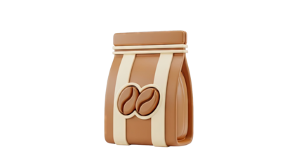 Illustration of a brown disposable coffee cup with a dark brown lid and a ribbed sleeve featuring a coffee bean logo, isolated on transparent background on transparent background