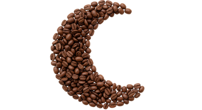Transparent coffee cup icon with bean motifs and steaming beverage