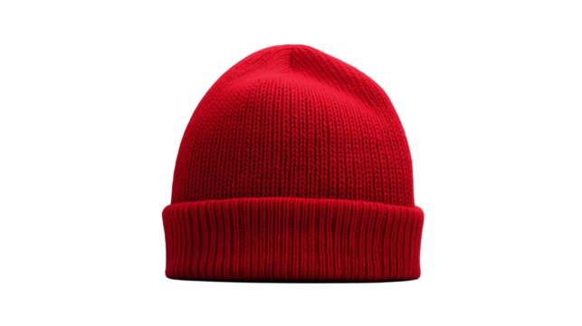 red knitted cap , hat of wool for cold weather isolated on white , transparent png
