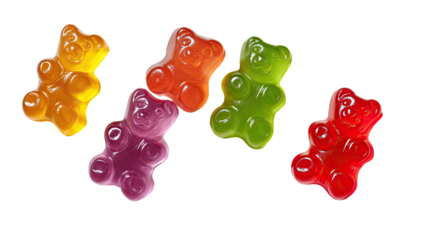 A set of five gummy bear candies in different colors on Png Format and Transparent Background
