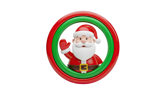 3D Cartoon Santa Claus Waving Inside Red and Green Ring