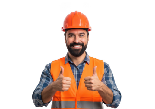 Construction worker giving thumbs up isolated on transparent background