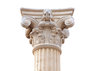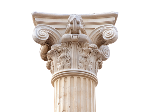 Ornate Ionic column capital isolated on transparent background, architectural detail of ancient Greek or Roman building element