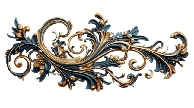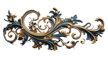 Gold and Teal Baroque Ornament Vintage Floral Design, Luxury Decorative Element.