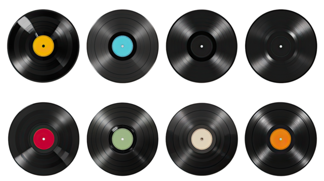 Vinyl Records: A collection of classic vinyl records displayed against a backdrop, a nostalgic reminder of analog music's golden era.