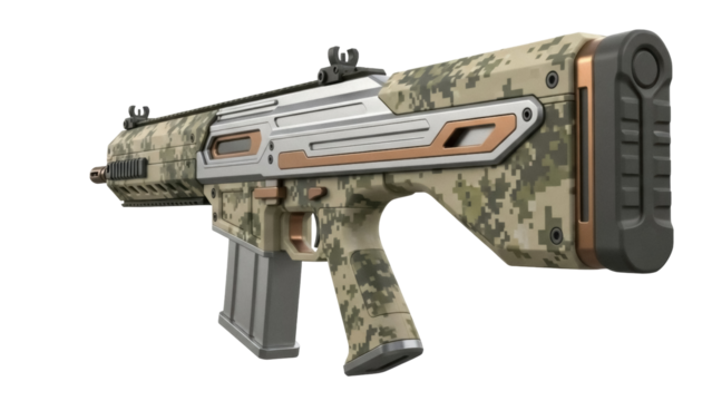 Isolated Tan Assault Rifle with Tactical Optics Ready for Action on the Battlefield