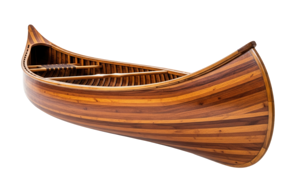 A weathered wooden arched bridge isolated on black. Perspective shows the walkway from its center