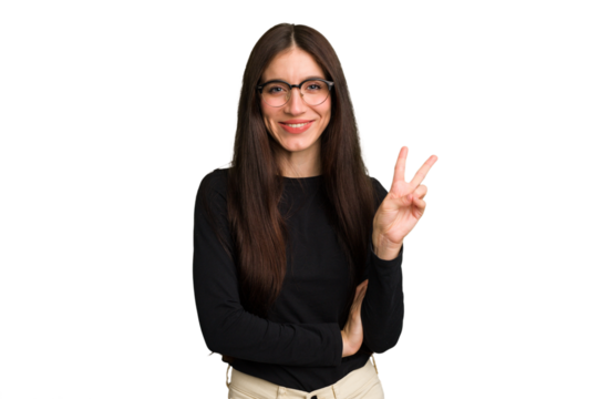 Young cute caucasian woman isolated showing number two with fingers.