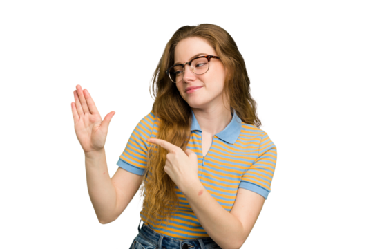 Beautiful woman looking upward with transparent background