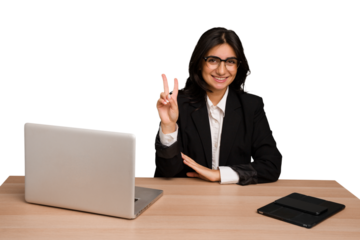 Young caucasian staff woman isolated smiling cheerful showing number five with fingers.
