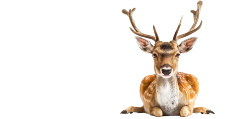 A deer is laying down on a white background