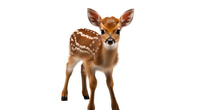Adorable whitetail fawn in a forest setting, a cute wildlife photograph capturing nature's beauty, transparent background.