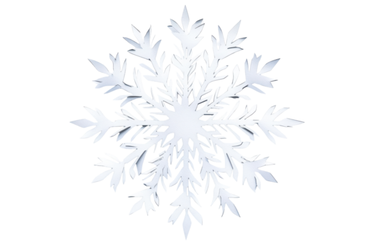 Intricate white snowflake design isolated on transparent background. Snowflake paper isolated on white background.