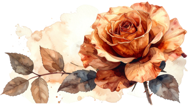 Beautiful vintage sepia toned rose with leaves.