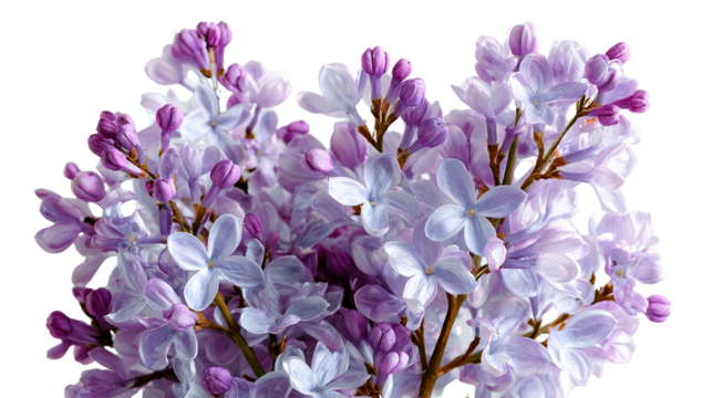 Five lilac color flowers arranged beautifully with soft petals natural floral composition isolated on white background