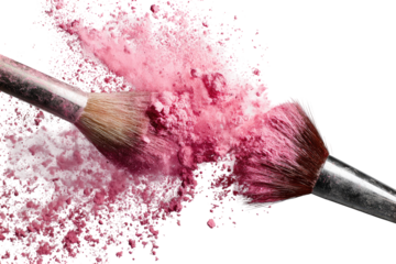Pink cosmetic powder explosion with makeup brush