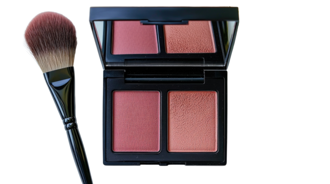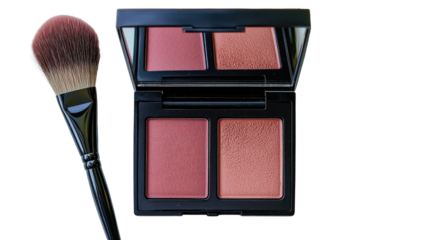 Elegant makeup palette with blush shades and brush on white background for beauty and cosmetics photography