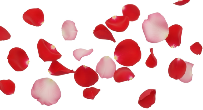 A vibrant, crimson-red rose petal, crafted with a delicate, organic texture and exhibiting subtle veining details, gently curves and folds in a natural, slightly, isolated on transparent background.