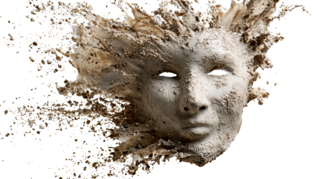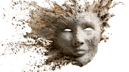 Artistic representation of a face made from natural elements, isolated on a dark background.