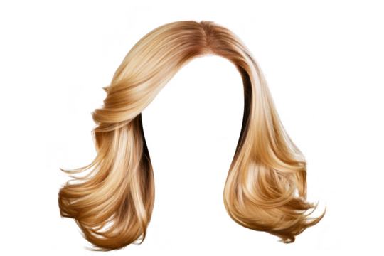 A beautiful blonde hair wig with soft waves and a natural shine. displayed against a plain white background. ideal for beauty and fashion photography