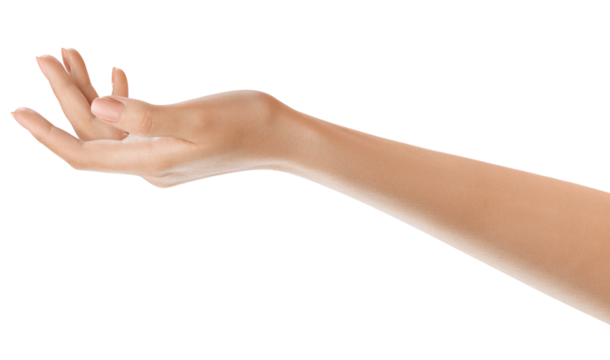 Close-up of a woman's hand, revealing the beauty of perfect skin. Concept for promoting body care and beauty products. Studio shot of woman's hand, showcasing a manicure.