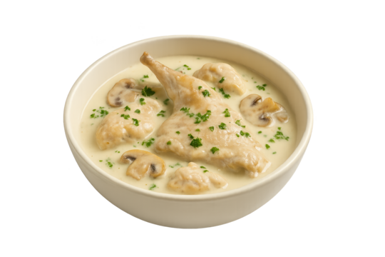 Creamy chicken and mushroom stew in light white sauce